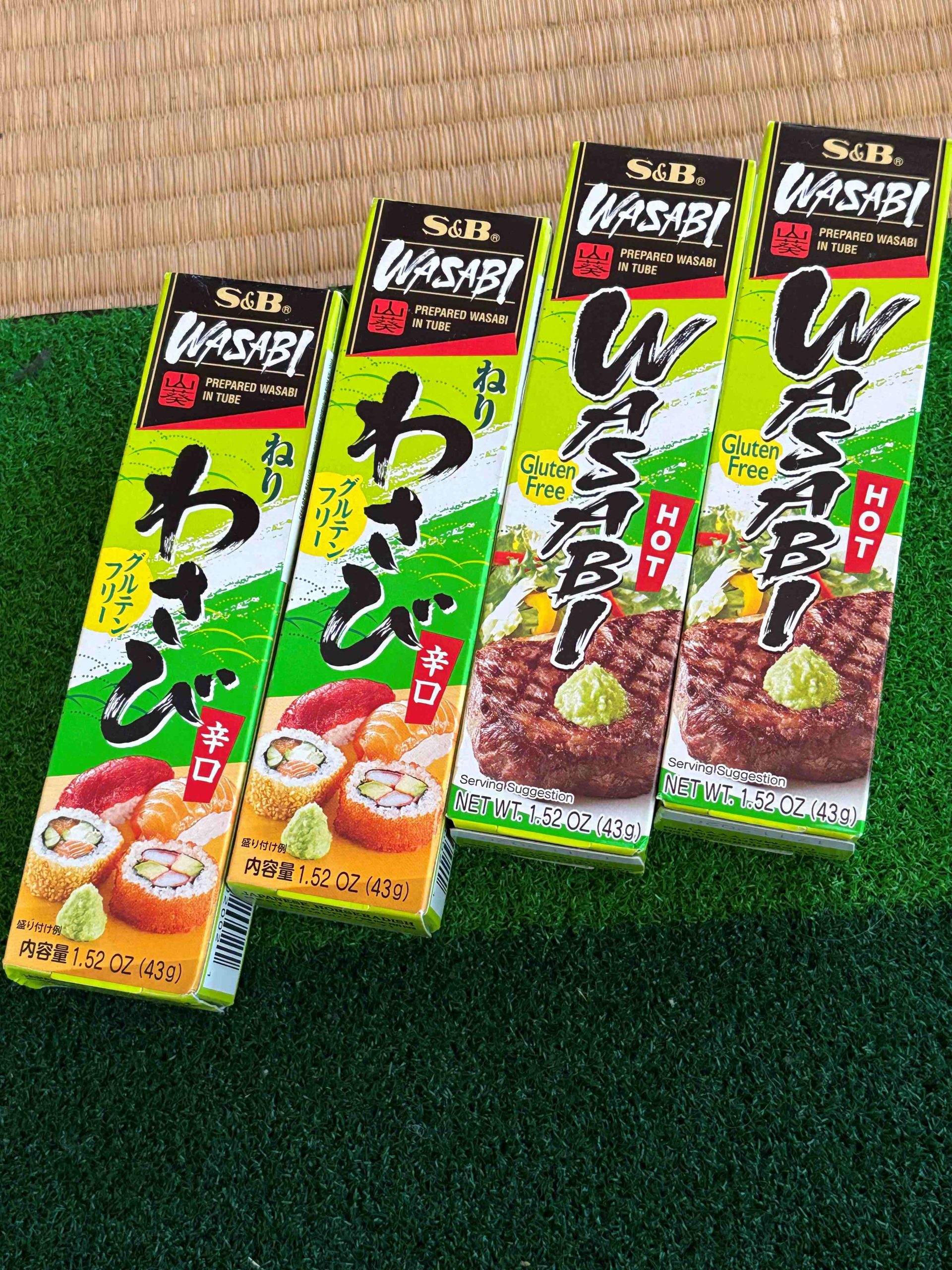 まぁまぁの和食店は、わさびはすりおろしたものが出てきますが、なんちゃって和食店は、写真のS&BのWASABIが定番です。